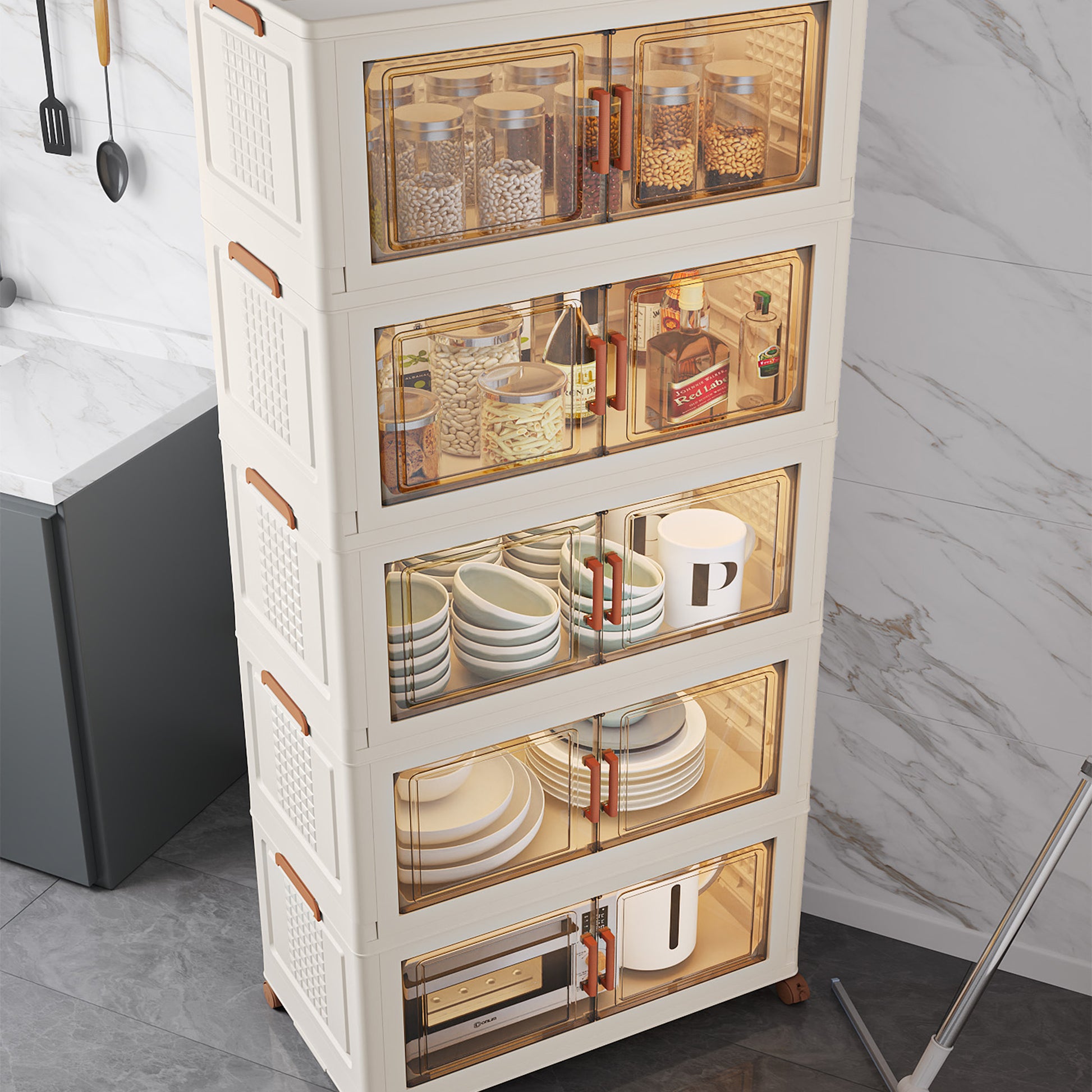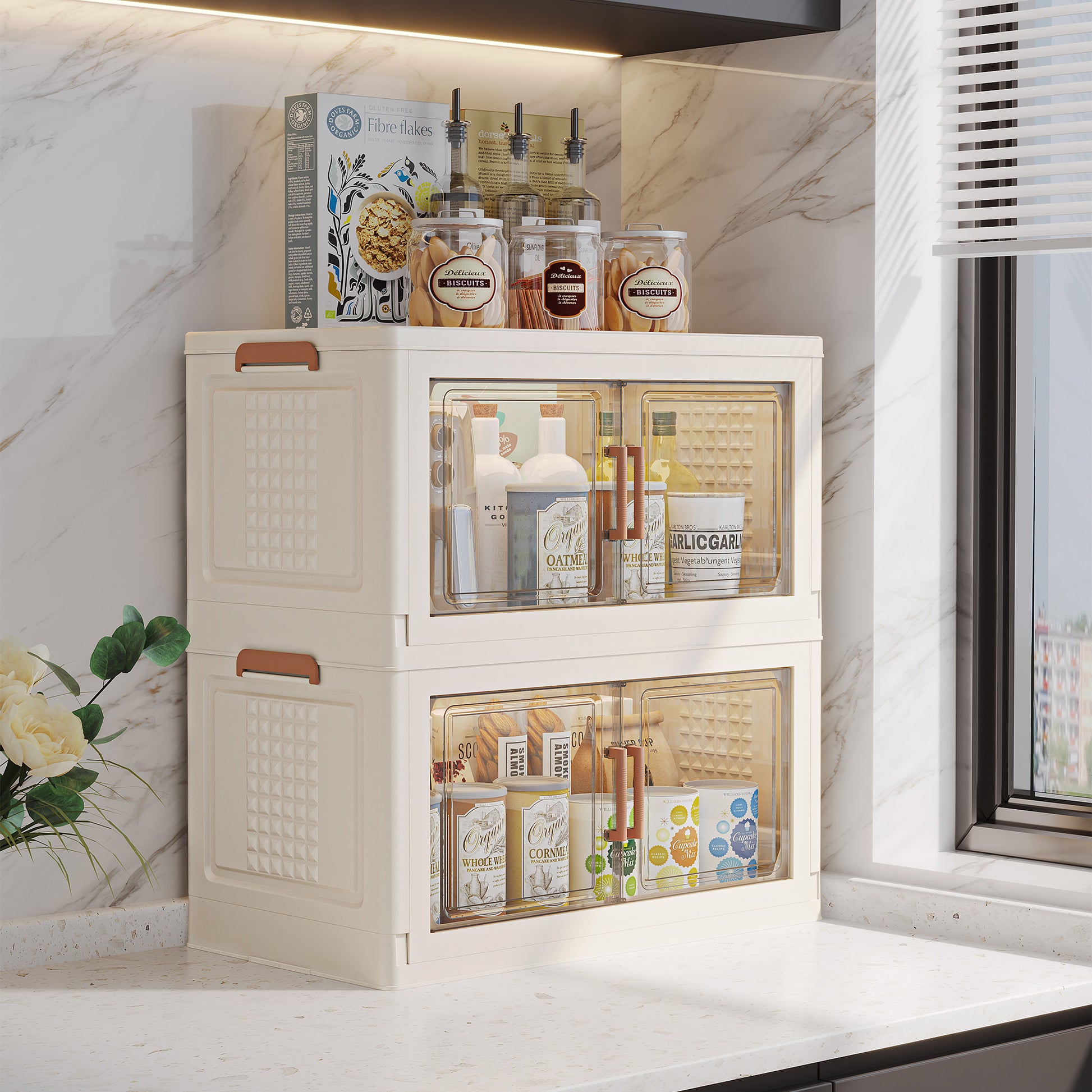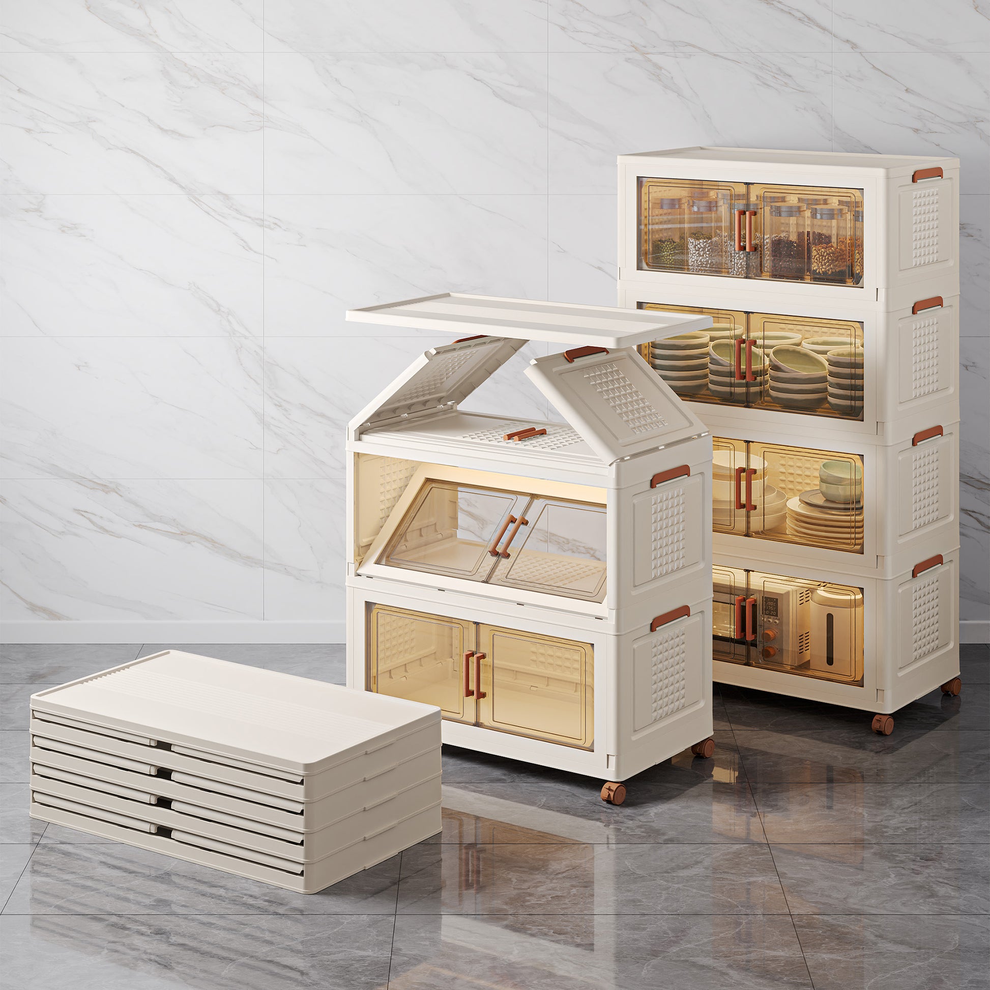 ONAIL Super large Foldable Storage Box with Lid & Universal Wheels, Stackable Household Storage Holders with Partition for Kitchen Bedroom Bathroom warehouse (cream white)Kitchen Storage,Home Storage,Bathroom Organization,Balcony Organizer